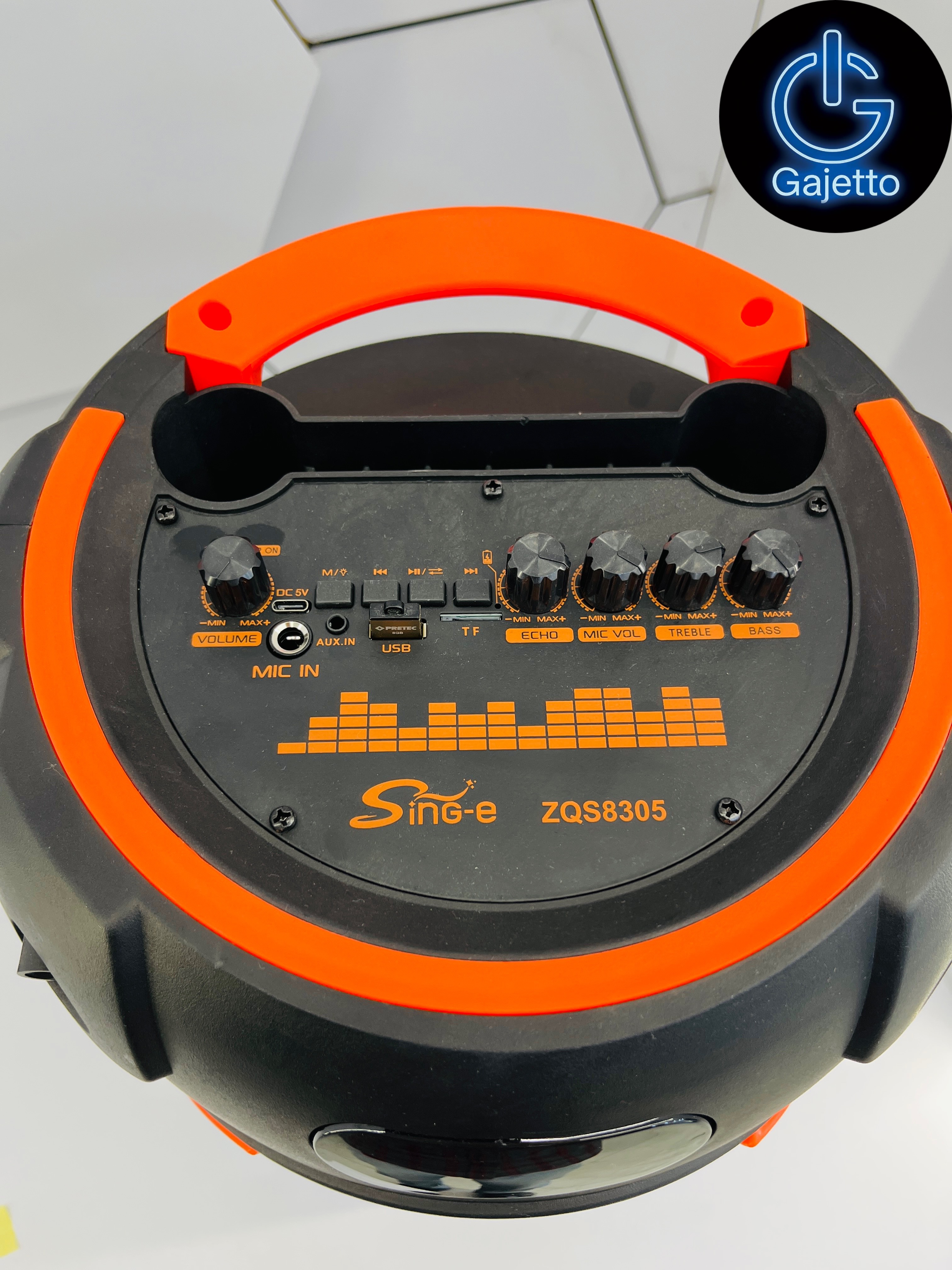 اسپیکر شارژی بلوتوثی مدل ZQS 8305 دارای کابل شارژ میکروفون و ریموت کنترل. ارتفاع حدودی 85 سانت
